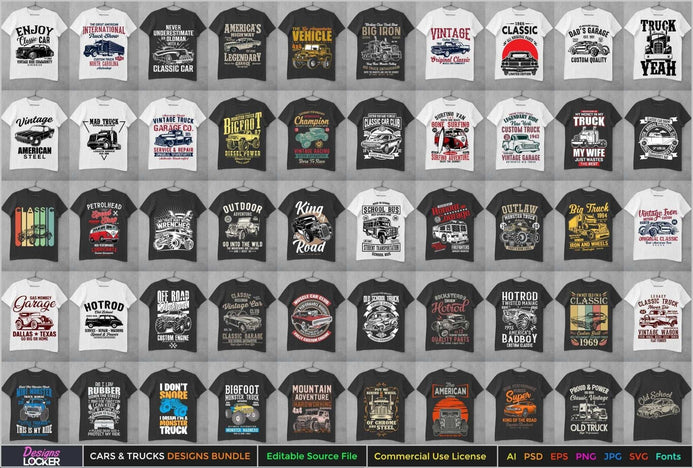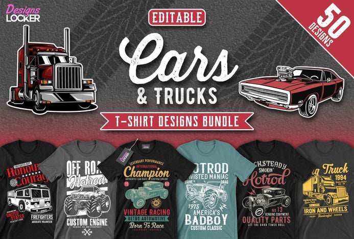 50 Editable Cars & Trucks T-Shirt Designs Bundle – Designs Locker