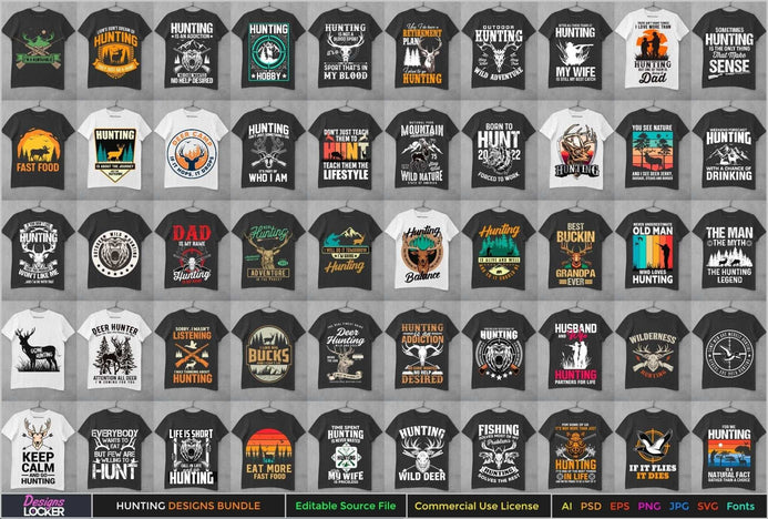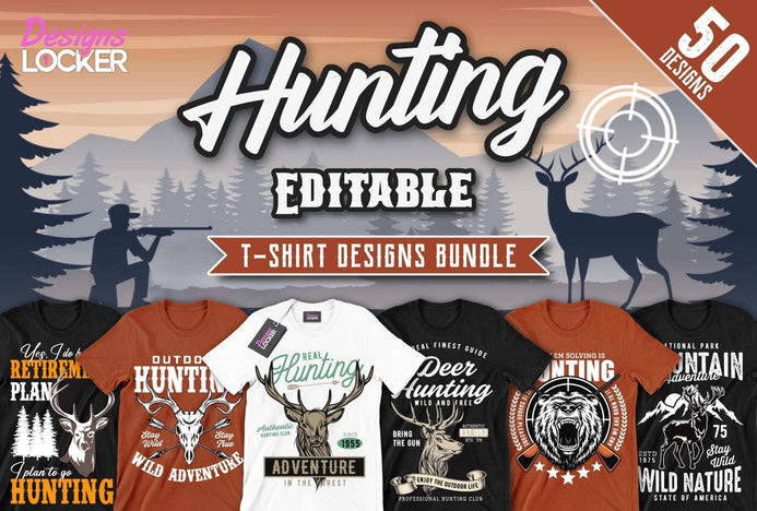 50 Editable Hunting T-Shirt Designs Bundle – Designs Locker