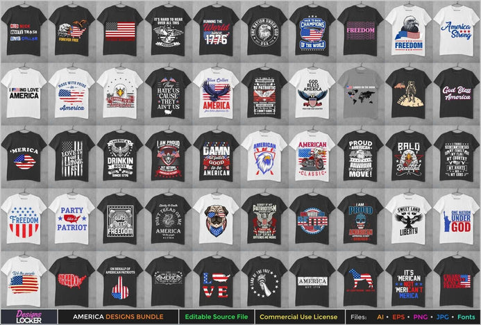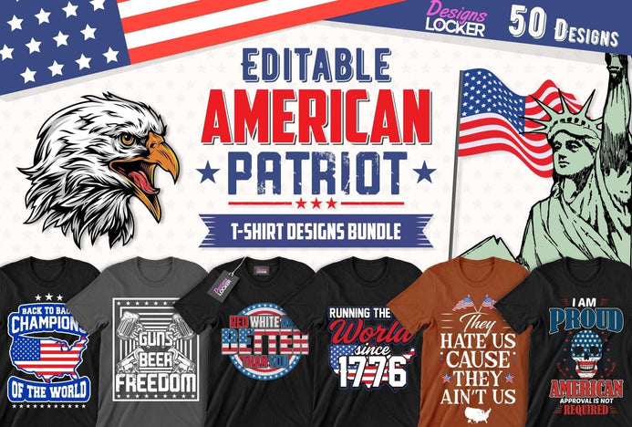 50 Editable American Patriot T-Shirt Designs Bundle – Designs Locker