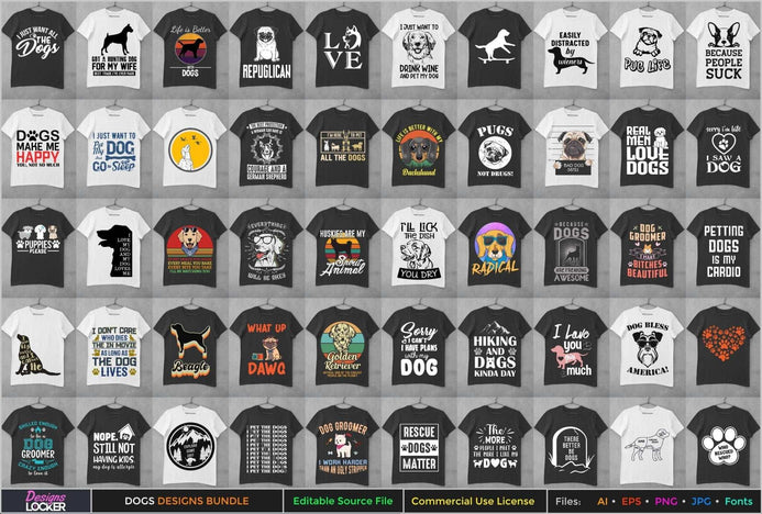 50 Editable Dog T-Shirt Designs Bundle – Designs Locker