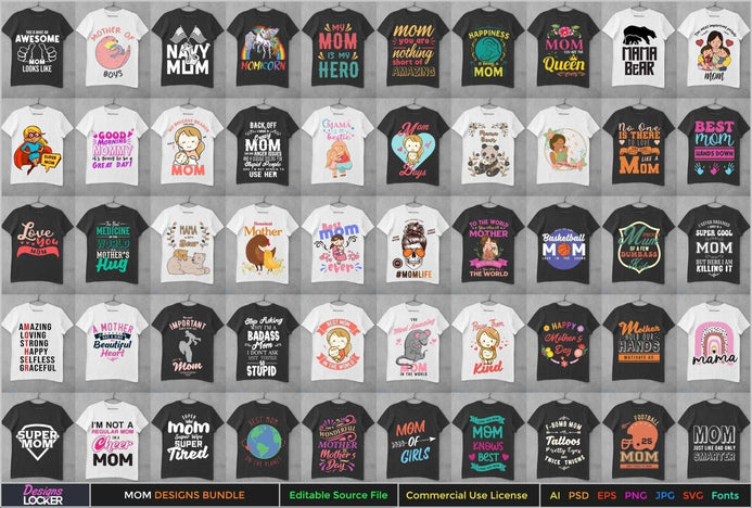 50 Editable Mom T-Shirt Designs Bundle – Designs Locker