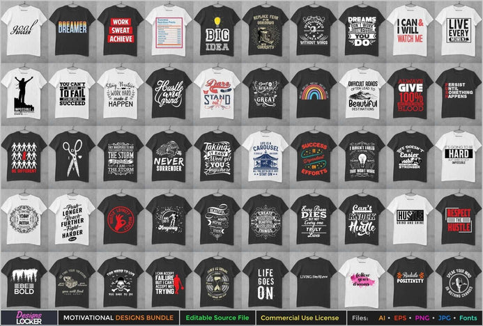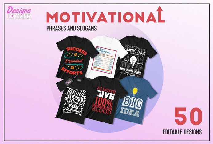 50 Editable Motivational T-Shirt Designs Bundle – Designs Locker
