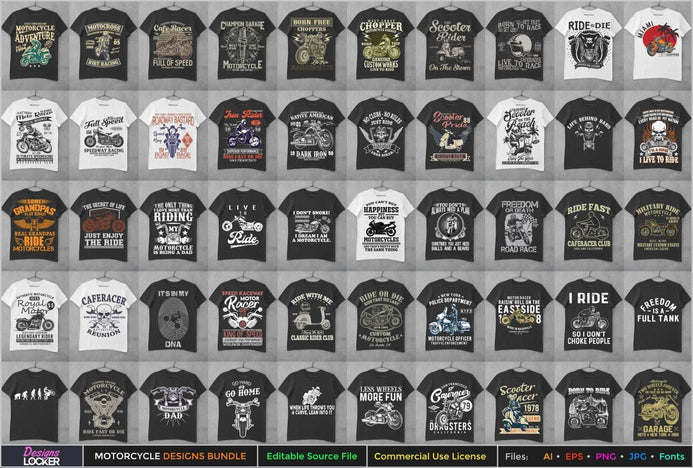 50 Editable Motorbike T-Shirt Designs Bundle – Designs Locker