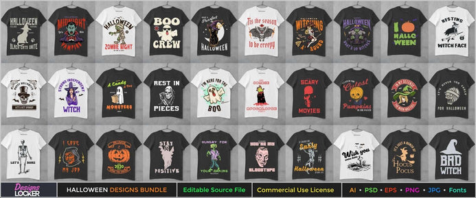 30 Editable Halloween T-Shirt Designs Bundle – Designs Locker